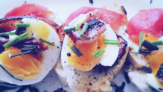 4 jajka 1 mały słoiczek marynowanych pieczarek 4 ogórki konserwowe 1/2 niedużej cebuli majonez jogurt naturalny musztarda sól, pieprz