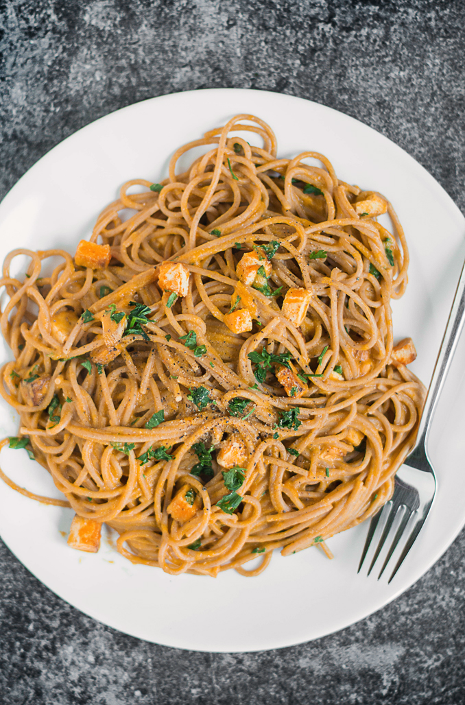 Dzisiaj przepis na ekpresowy ale przepyszny obiad – makaron w sosie dyniowo-serowym…