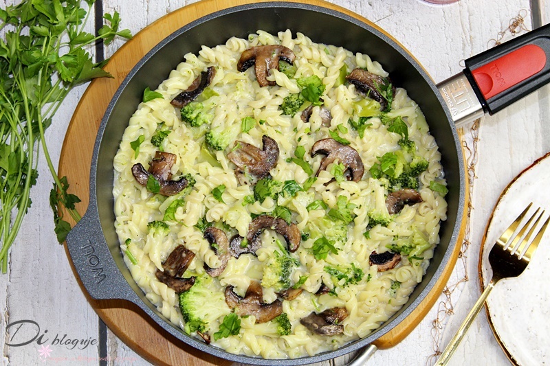 Makaron z brokułem i pieczarkami w sosie z sera smażonego to szybka…