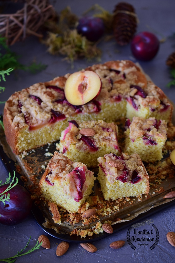 Puszyste ciasto, pełne migdałowego aromatu z owocami jesieni-śliwkami, posypane cynamonową kruszonką kojarzy…