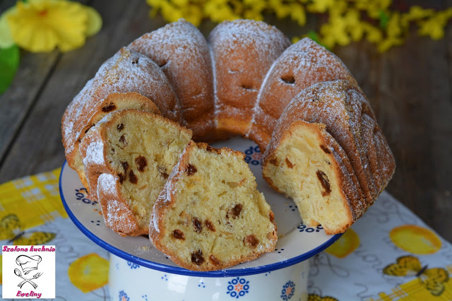 Puszysta babka z namoczonymi w alkoholu rodzynkami, chrupiącymi migdałami, posypana słodkim pudrem…