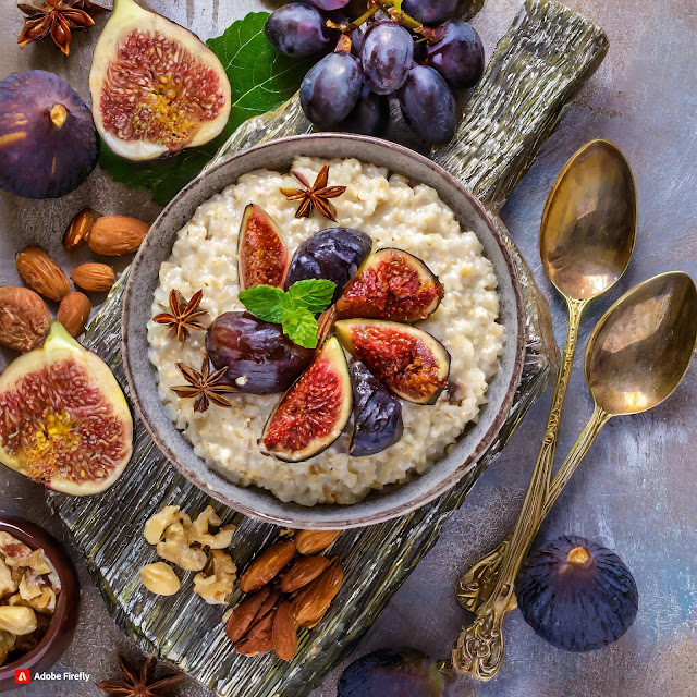 Owsianka z figami, winogronami, daktylami i orzechami brazylijskimi / Oatmeal with figs, grapes, dates and brazil nuts