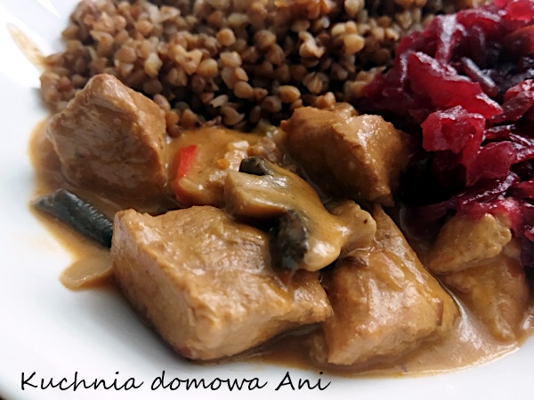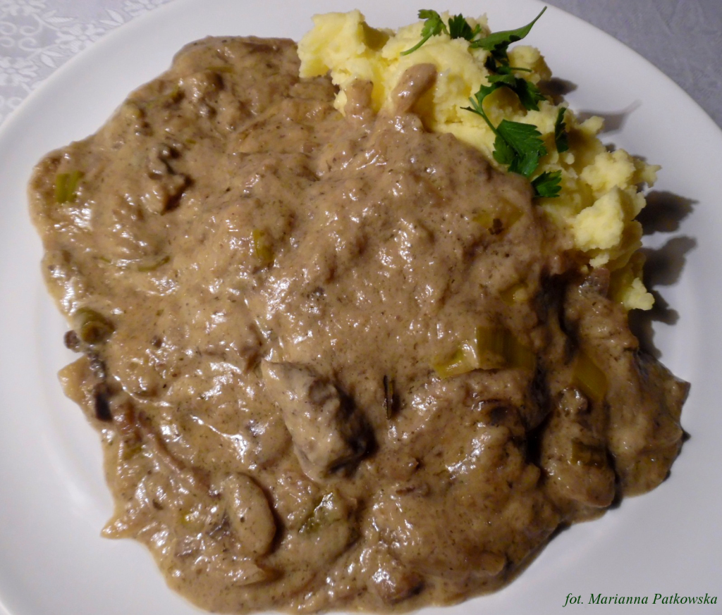 Stek w sosie pieczarkowo-porowym