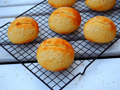 Kukurydzianki czyli bułeczki pszenno-kukurydziane na kefirze, z dodatkiem miodu oraz posypane sezamem.…