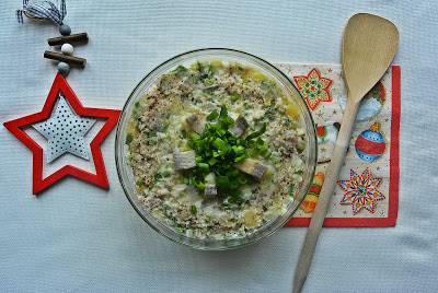 Świąteczna sałatka śledziowa z ziemniakami, cebulą i szczypiorem