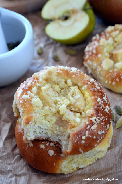 Kardamonowe drożdżówki z budyniem, jabłkiem i kruszonką