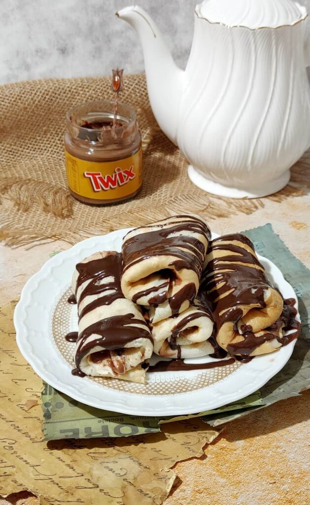 Lubicie naleśniki? Próbowaliście kiedyś przygotować je na samych białkach? Zobaczcie jakie to proste. Wychodzą delikatne i pyszne. U mnie dziś w wersji twix. Pyszny krem, czekoladowa polewa. Nic tylko jeść ze smakiem. Oj ciężko skończyć na jednym