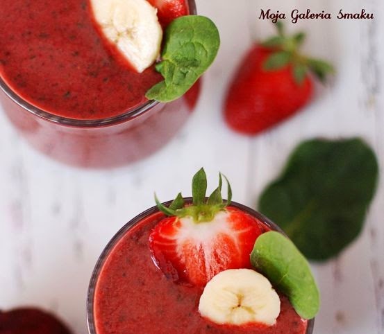 woda kokosowa + burak + truskawka + szpinak + banan + olej lniany