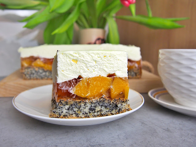 Zostały Ci białka, po pączkach, faworkach, a może kruchym cieście? Nie masz ochoty na kolejną bezę, a rolady bezowe nie są dla Ciebie. Masz ochotę na coś pysznego, efektownego a jednocześnie prostego? To ciasto sprawdzi się doskonale – makowo kokosowy spód na białkach, orzeźwiająca galaretka brzoskwiniami, delikatny krem śmietankowy, a to wszystko polane białą czekoladą. Brzmi jak słodkie niebo?