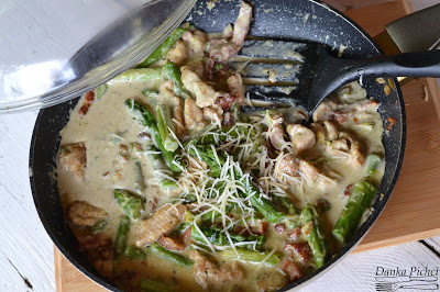 Spaghetti a'la Carbonara z zielonymi szparagami