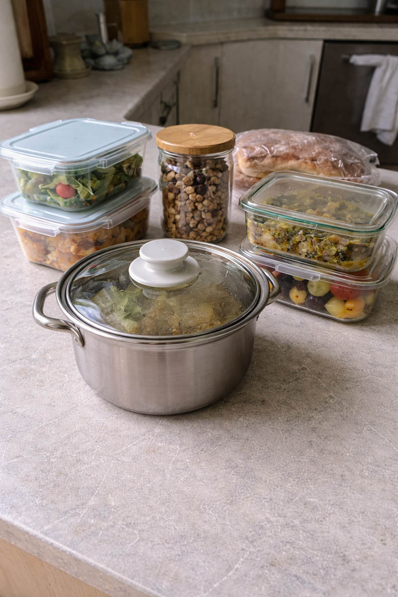 Gotowe dania najlepiej studzić do temperatury pokojowej, ale nie zostawiać ich na blacie zbyt długo. Po wystudzeniu warto przełożyć je do szczelnych pojemników i wstawić do lodówki. Dania jednogarnkowe, zupy czy potrawki dobrze znoszą takie przechowywanie i często smakują lepiej następnego dnia. Kluczowe jest szczelne zamknięcie, które ogranicza dostęp powietrza i zapachów.