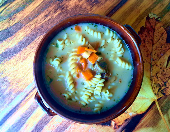 Do przygotowania tej zupy użyłam zapasów suszonych grzybów. Najlepiej użyć kilku rodzajów: borowików, podgrzybków, maślaków…Grzyby należy moczyć w zimnej wodzie min. 4 godziny z dodatkiem odrobiny octu jabłkowego, co wydobędzie aromat i pomoże pozbyć się zanieczyszczeń. Zupa jest sycąca i świetnie rozgrzewa w zimne dni.