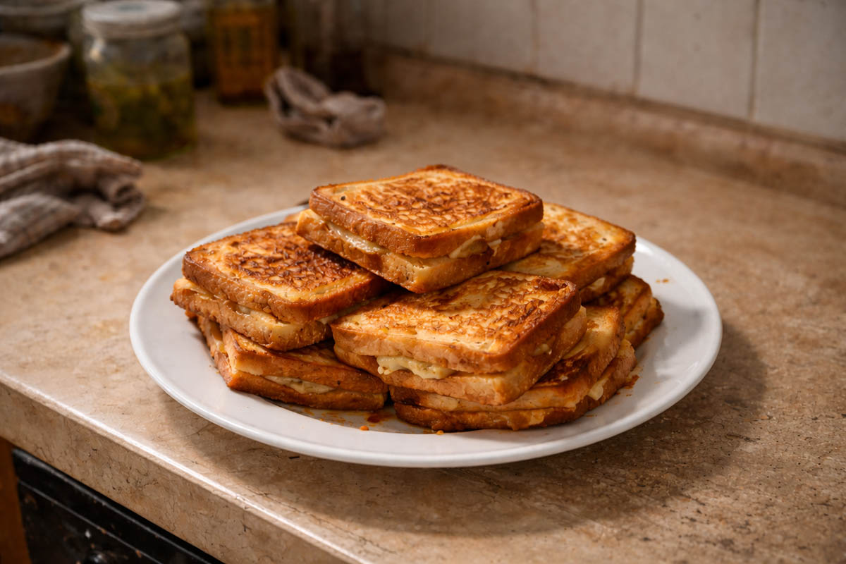 Nie potrzeba tostera ani piekarnika. Pieczywo, ser i dowolne dodatki podsmażone na patelni sprawdzą się jako szybka kolacja, szczególnie gdy nie masz ochoty gotować „pełnego dania”.