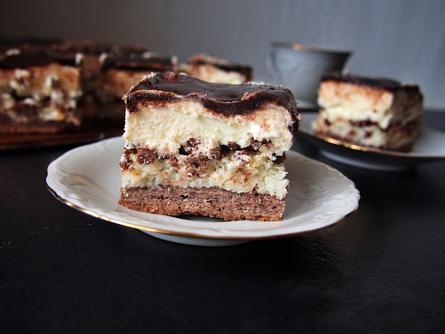 Połączenie kruchego kakaowego spodu, chrupiącej kokosowej bezy i aksamitnego kremu z białą czekoladą to prawdziwa poezja smaku – słodka, delikatna i absolutnie uzależniająca.