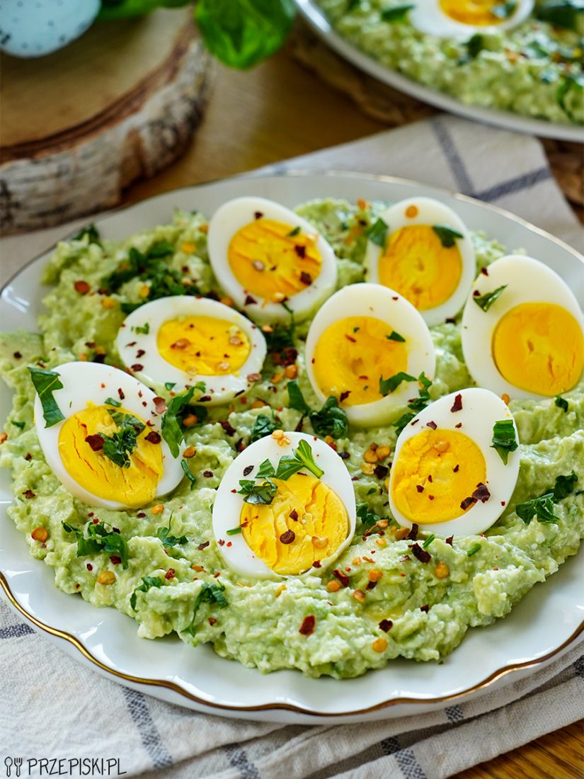 To danie jest nie tylko proste, ale też efektowne – połówki jajek wciśnięte w zieloną, kremową pastę prezentują się świeżo i apetycznie.