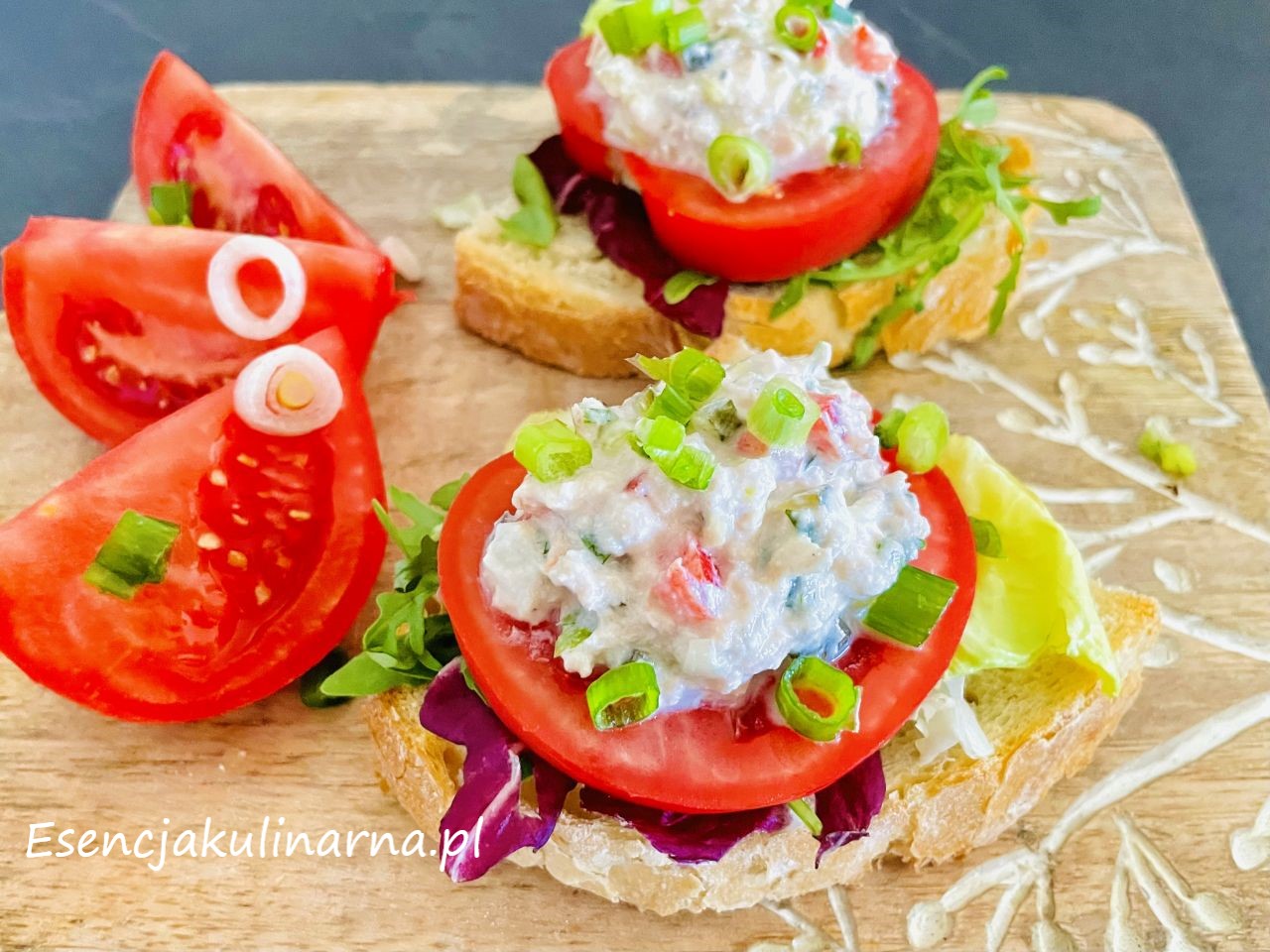 Pyszna pasta kanapkowa z tuńczykiem, papryką, porem, ogórkiem kiszonym i szalotką.