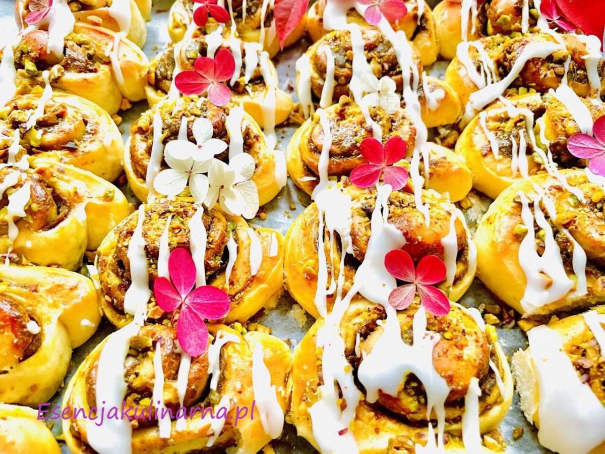 Pyszne, delikatne i pachnące drożdżówki pistacjowe z lukrem cytrynowym.