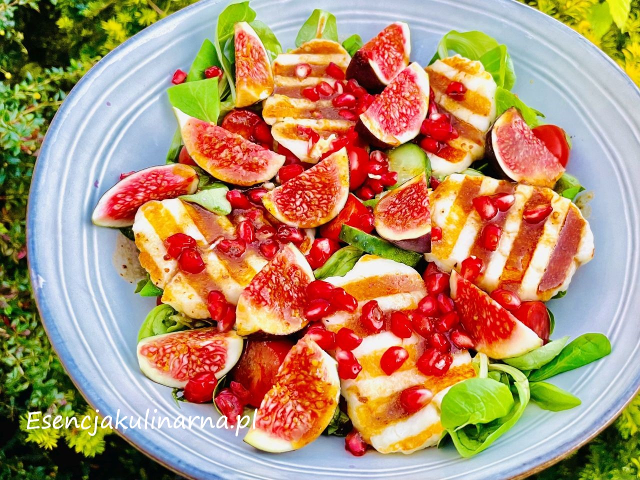 Pyszna i szybka sałatka z grillowanym halloumi i figami. Do tego pyszny sos na bazie oliwy z oliwek, musztardy, miodu i octu balsamicznego – pyszne i szybkie danie.