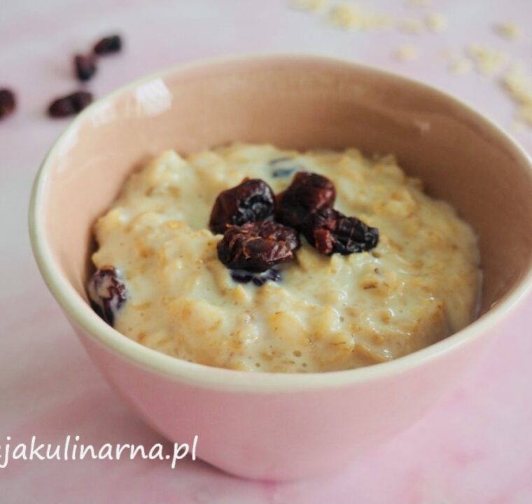 Pyszna owsianka waniliowa na ciepło z dodatkiem żurawiny.
