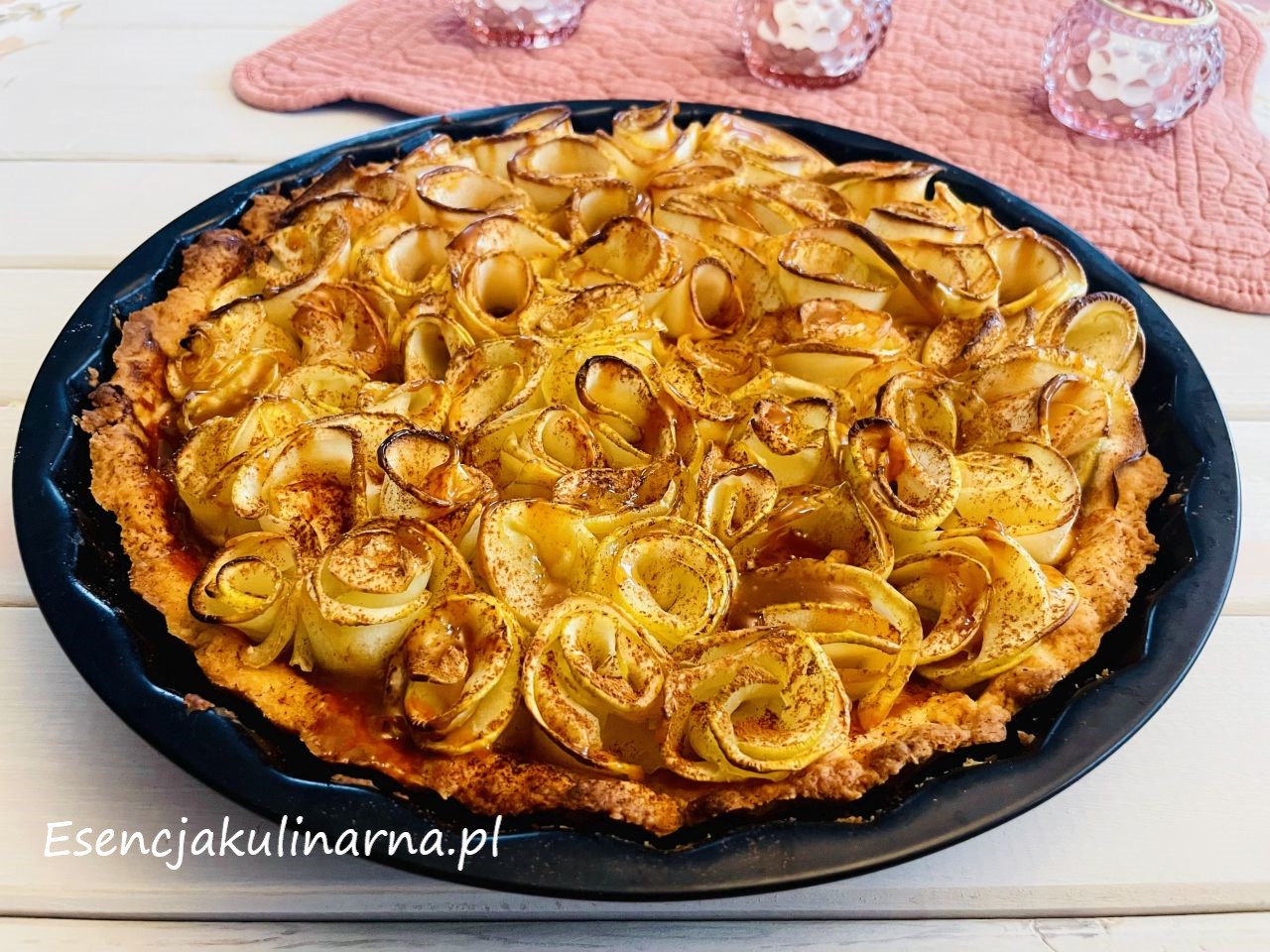 Przepis na pyszną tartę z jabłkami i słonym karmelem. Idealne ciasto na imieniny. Różyczki z jabłek robią wrażenie:)