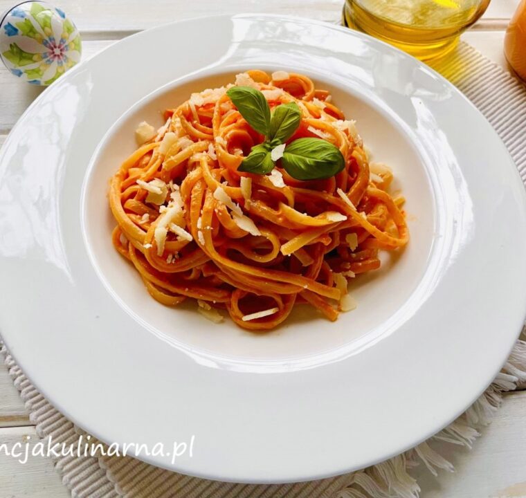 Makaron calabrese – czyli z pastą na bazie pieczonej papryki, suszonych pomidorów i sera ricotty. Pyszna i prostsza w wykonaniu pasta niż mogłoby się wydawać.