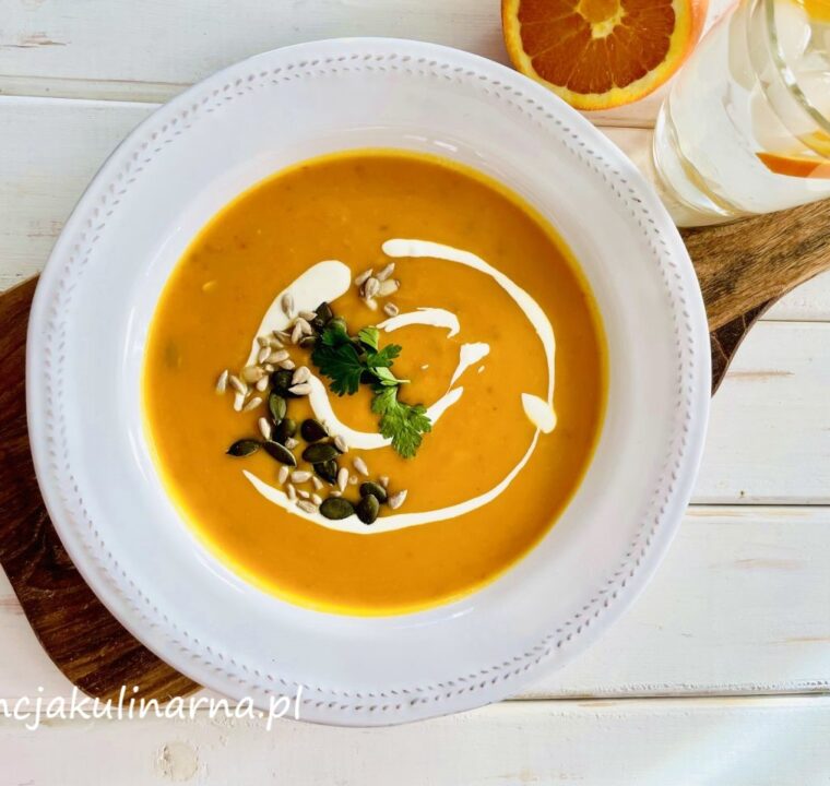 Pyszna zupa dyniowa z suszonymi pomidorami, imbirem i kurkumą. Pyszna i rozgrzewająca.