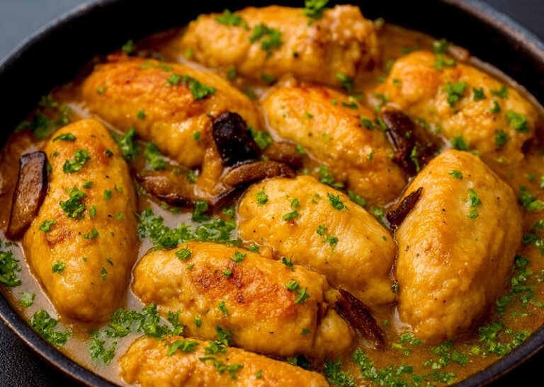 Soczyste roladki z kurczaka po staropolsku to prawdziwa uczta dla miłośników domowych, treściwych smaków. Delikatne mięso drobiowe skrywa aromatyczny farsz z podsmażonego boczku[…]