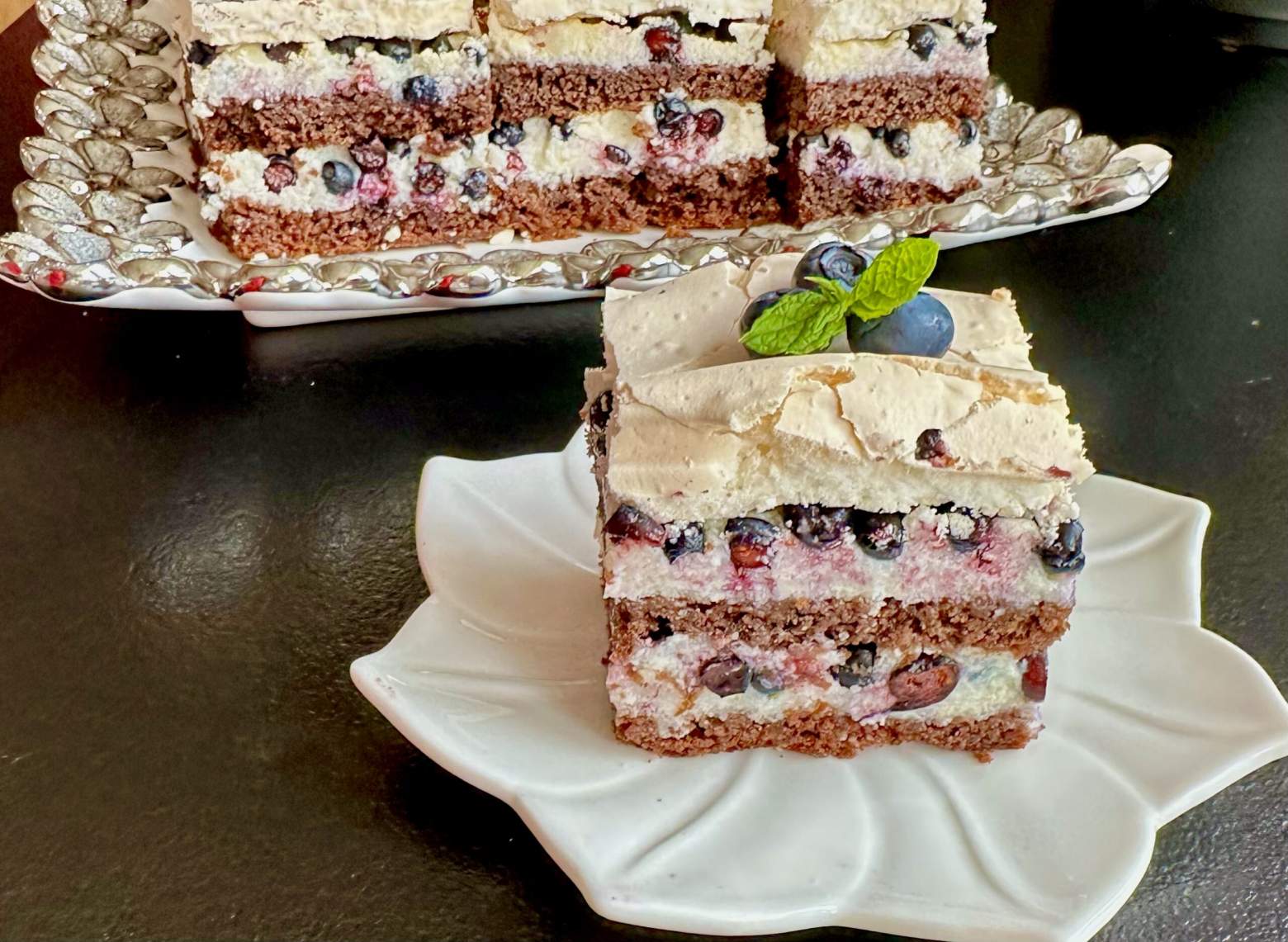 Fantazja – ciasto z bezą, jagodami i kremem grysikowym