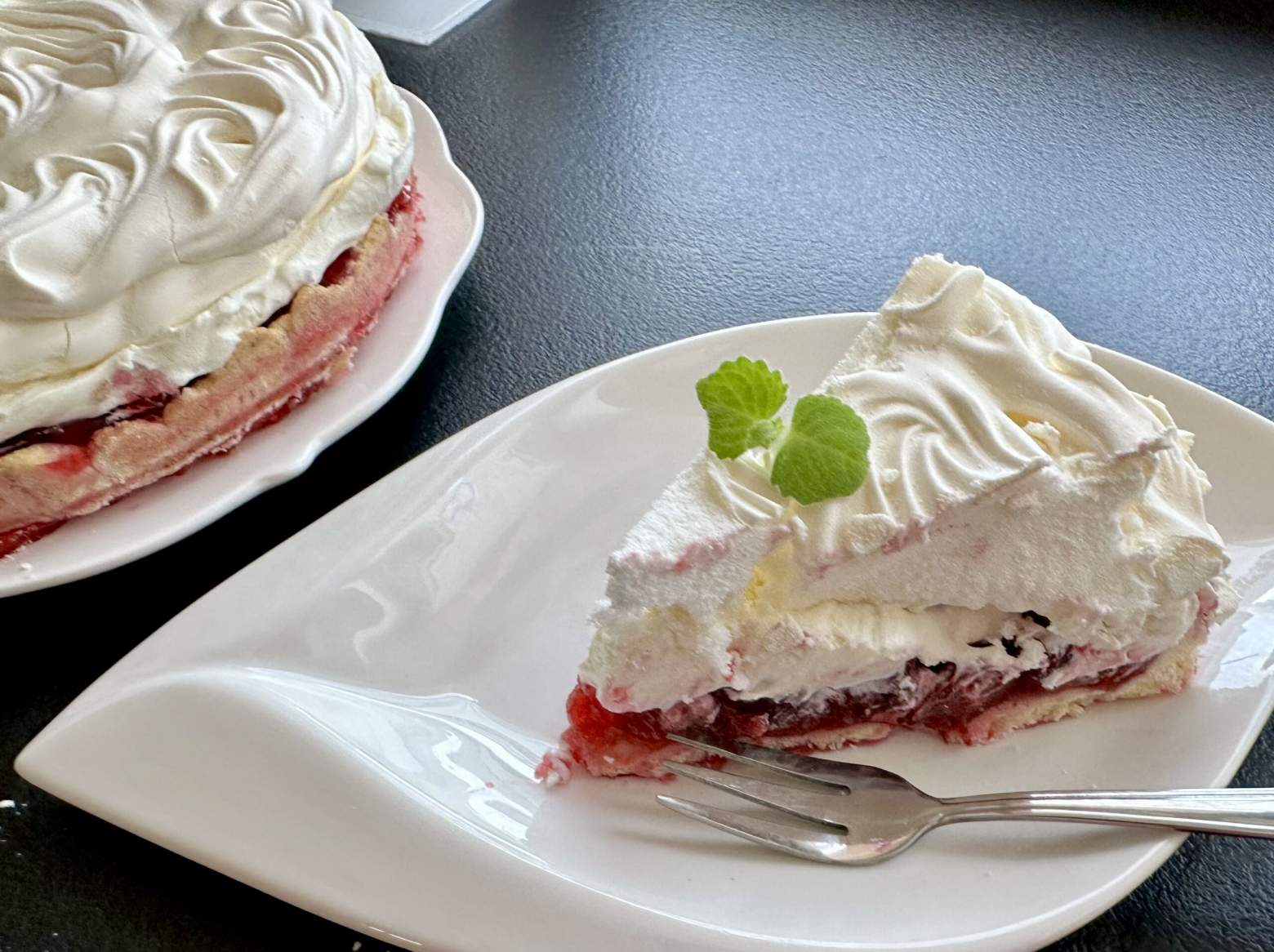 Lekkie i delikatne ciasto na kruchym spodzie z wiśniami, kremem śmietankowym i bezą, które wprost rozpływa się w ustach. Niebo w gębie!