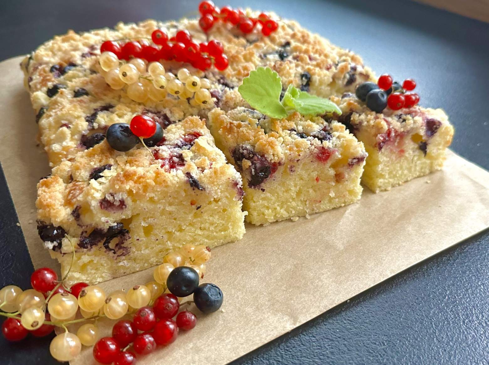 Mega wilgotne oraz delikatne ciasto z sezonowymi owocami i rumianą kruszonką. Bardzo proste i wręcz ekspresowe w wykonaniu. Polecam!