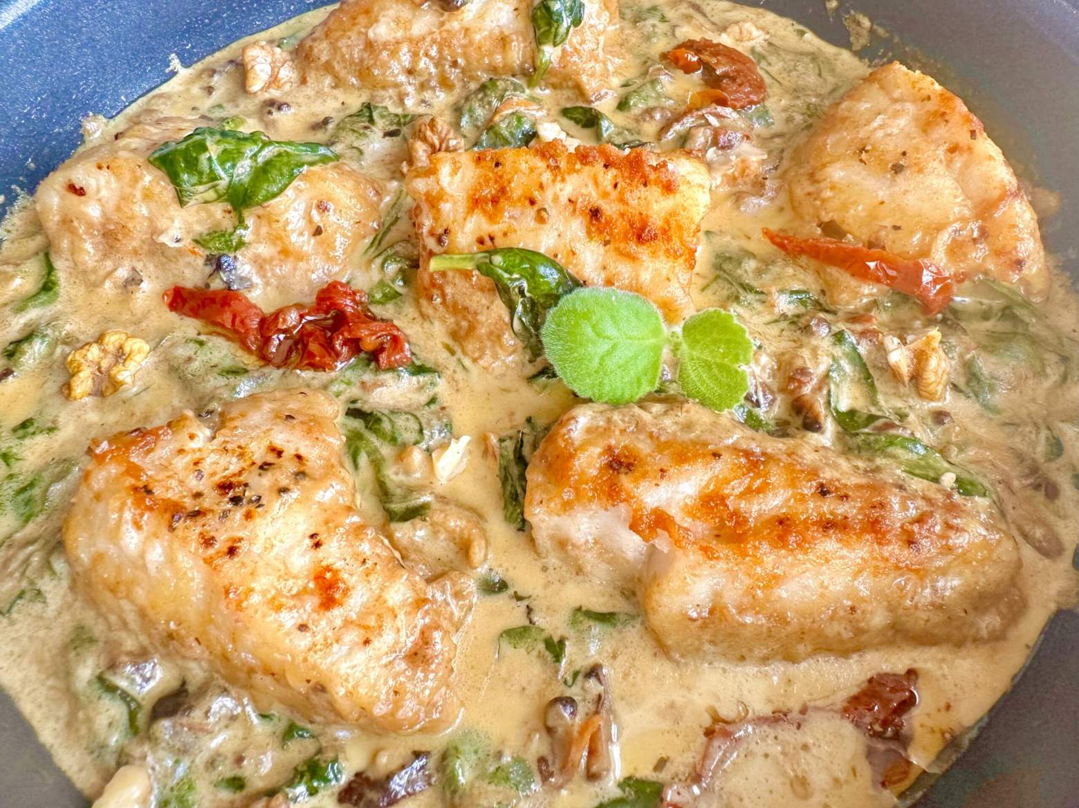 Blog z apetytem dodał(a) nowy wpis, Dorsz w sosie serowym ze szpinakiem i suszonymi pomidorami 2 lata, 7 miesięcy temu