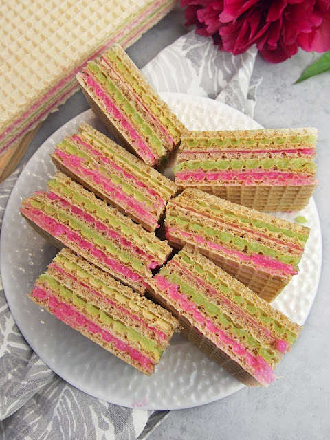 Te wafle to dla mnie smak dzieciństwa, mama robiła je nam dość często, najczęściej z czerwoną galaretką. Jeśli mam być szczera to ja najbardziej lubiłam te klasyczne z mlekiem w proszku.