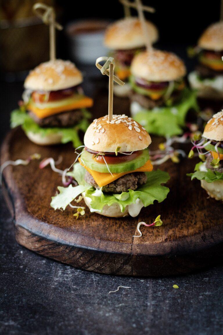 Mini cheeseburgery z domowymi mini bułeczkami i kotlecikami wołowymi.