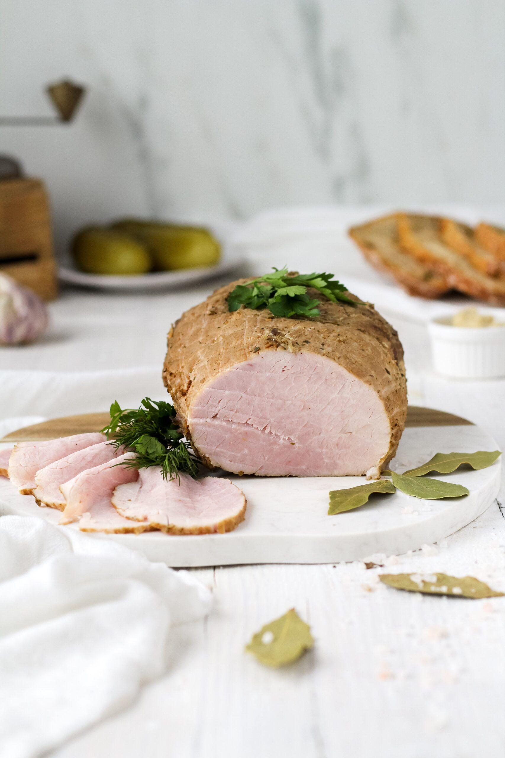 Pyszna soczysta i aromatyczną szynka gotowana. Idealną na kanapki.