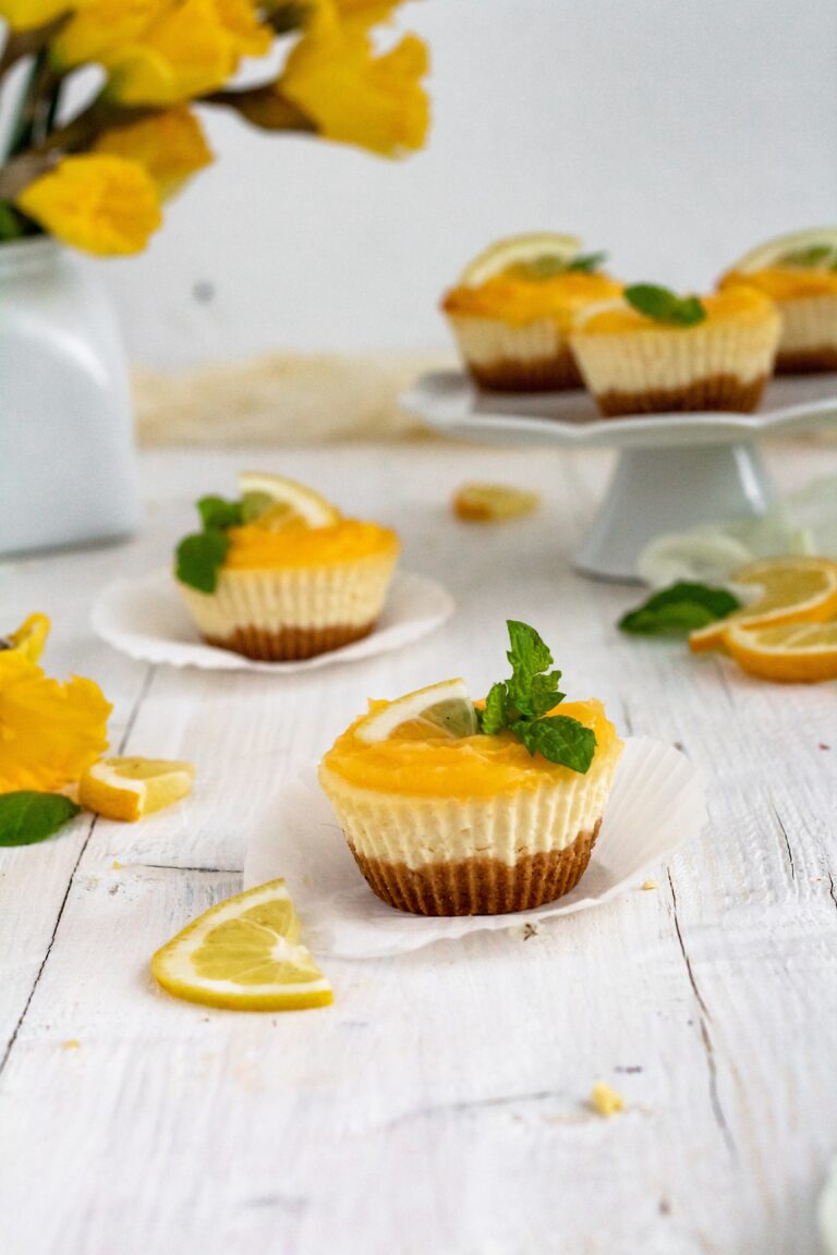 Delikatnie cytrynowe mini serniczki z lemon curd. Idealne połączenie smaku słodkiego i kwaśnego.