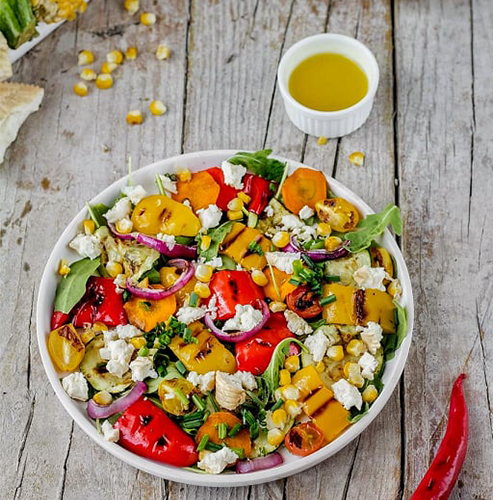 Sałatka z grillowanymi warzywami i wędzonym kozim serem bardzo prosta w przygotowaniu.