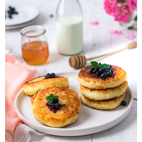 Syrniki są przepyszne lekkie delikatne puszyste i sycące idealne na śniadanie z owocami miodem lub konfiturą.Czytaj dalej