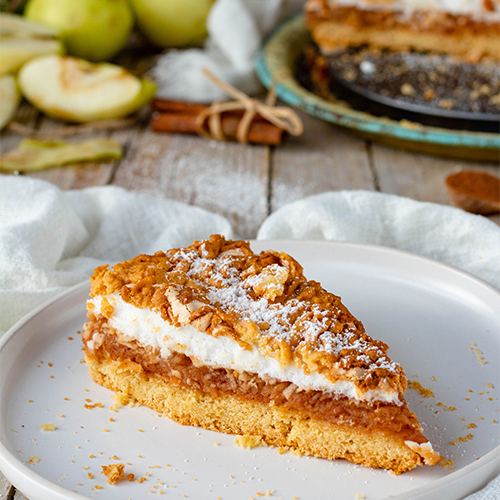Szarlotka z bezą i kruszonką pyszna krucha maślana bardzo prosta i szybka w przygotowaniu.