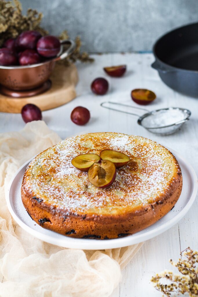 Ciasto z patelni ze śliwkami bez piekarnika. Tak jest to możliwe.
