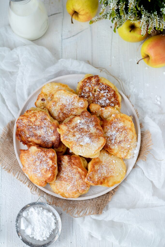 Racuchy drożdżowe z jabłkami domowe pyszne puszyste w środku szybkie i proste w przygotowaniu.