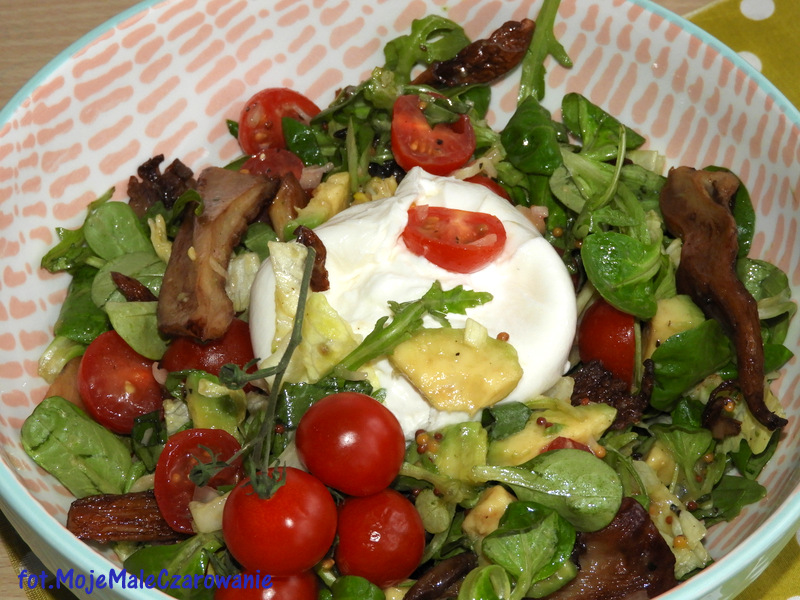 Moje Małe Czarowanie dodał(a) nowy wpis, Burrata na sałatce z boczniakami 2 lata, 4 miesiące temu