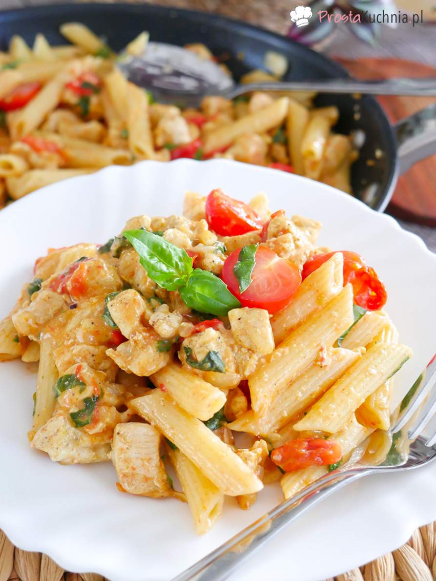 fajneprzepisy dodał(a) nowy wpis, Kurczak z makaronem, pomidorkami i bazylią 2 miesiące temu
