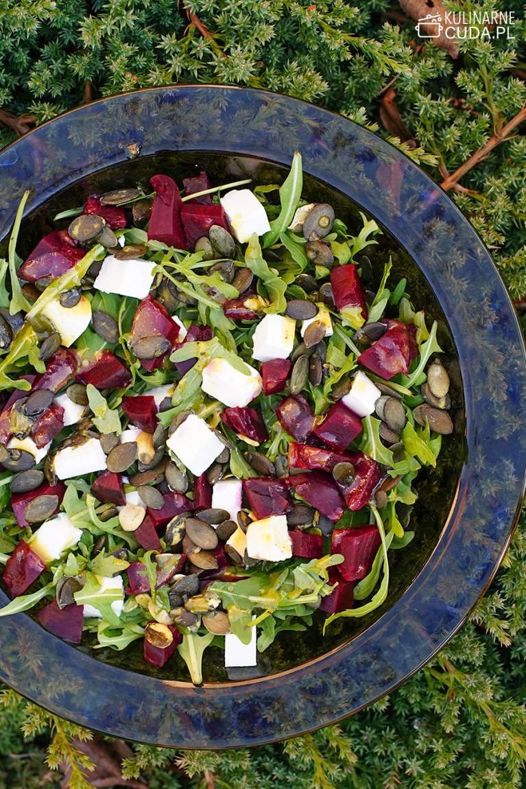 Przepis na sałatkę z serem sałatkowym i burakiem. Szybka, zdrowa i pyszna przekąska, idealna do grilla, na kolację lub spotkania z rodziną.