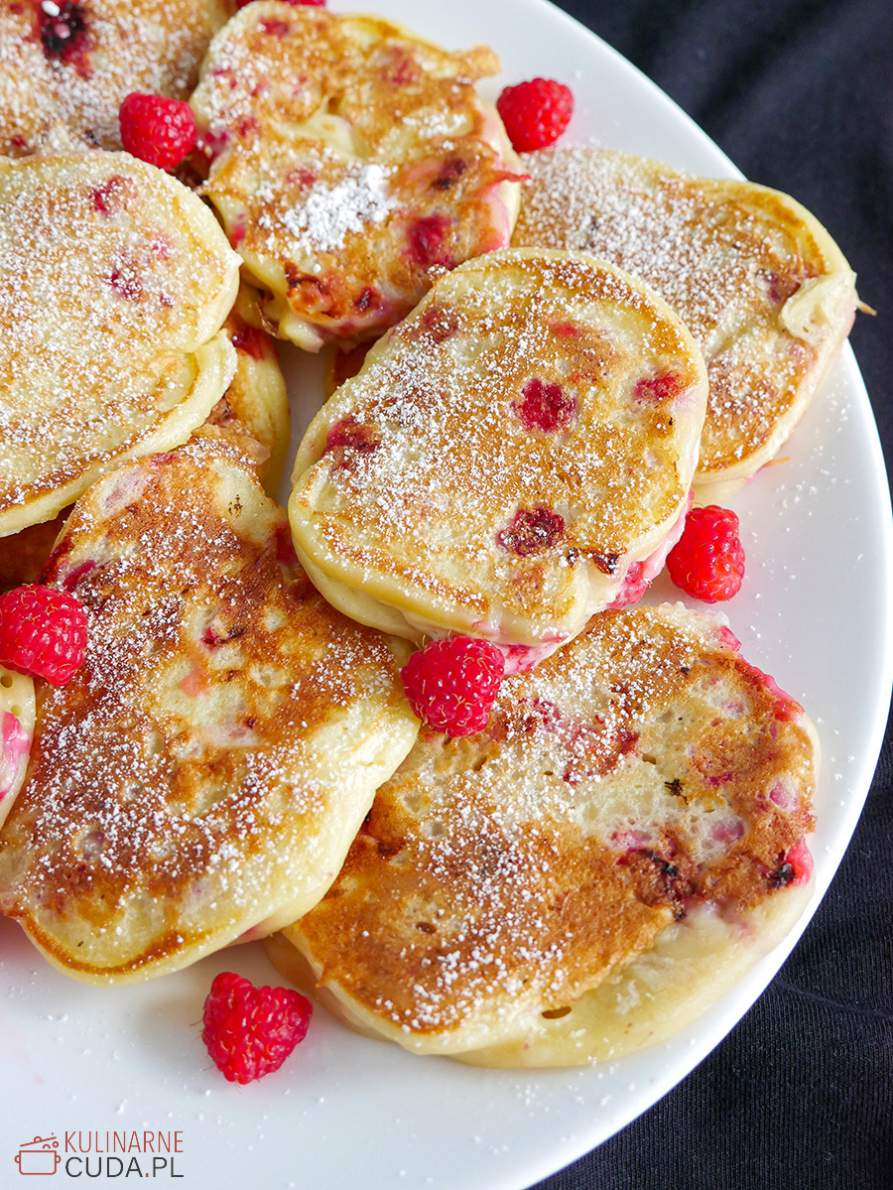 Pyszne placuszki, przygotowane z dodatkiem świeżych malin świetnie sprawdzą się na słodkie śniadanie, obiad lub kolację.