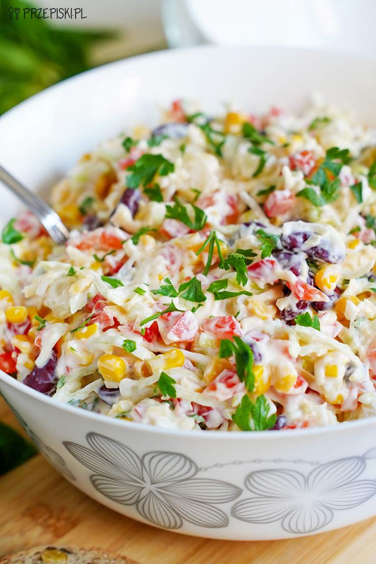 Pyszna sałatka z ananasem, serem cheddar, kukurydzą i czerwoną fasolą. Pyszna, kolorowa i szybka w przygotowaniu. To idealna sałatka na imprezę.
