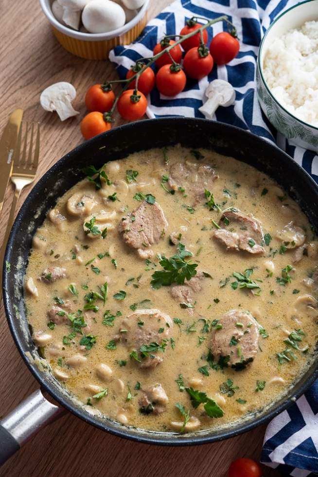 Polędwiczki w sosie pieczarkowym można opcjonalnie wzbogacić kilkoma suszonymi grzybami np. podgrzybkami czy borowikami.