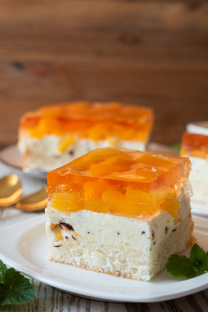 Ciasto brzoskwiniowe zaczynamy od rozpuszczenia dwóch galaretek brzoskwiniowych w około 800-850 ml wrzątku. Odstawiamy do lekkiego st[…]