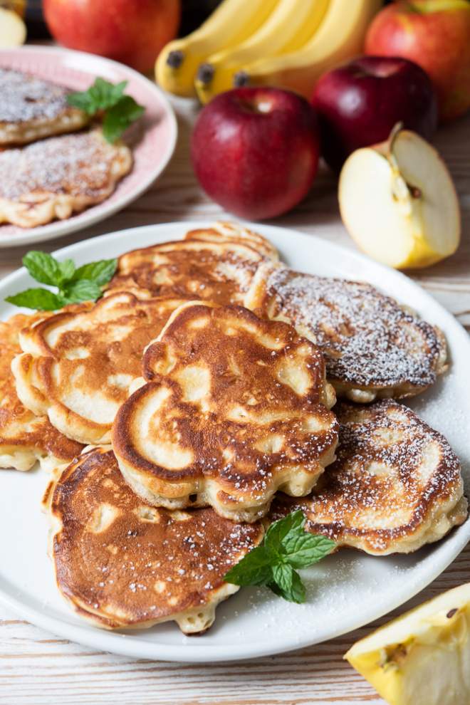 Racuchy na kefirze przygotowałam z jabłkami i bananem – jeśli chcecie to możecie je zrobić bez jakichkolwiek dodatków owocowych.