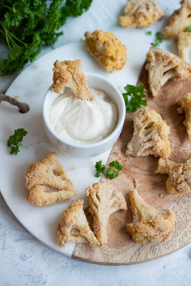 Kalafior w panierce to świetna przekąska imprezowa. Może stanowić także smaczny dodatek do obiadu.