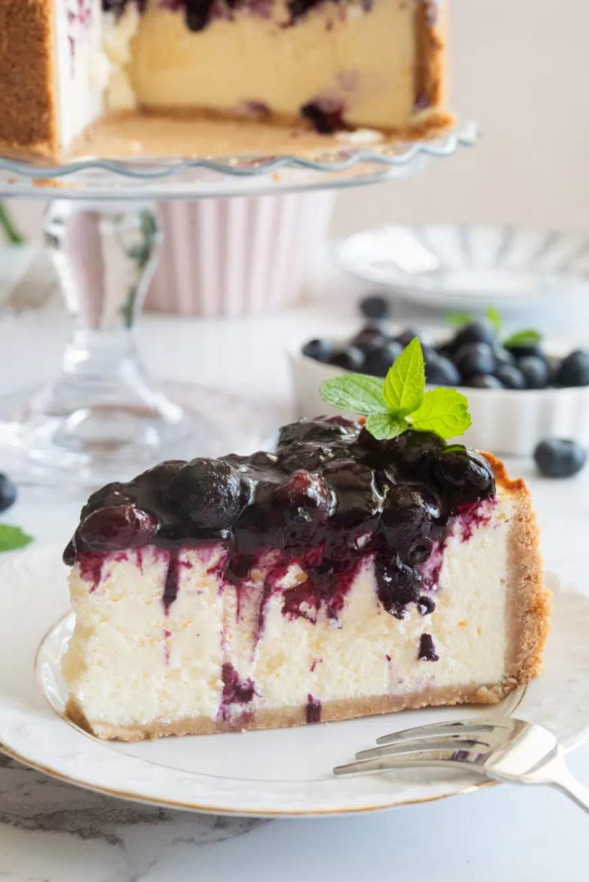 Sernik z frużeliną borówkową to niezwykle kremowy, smakowity letni wypiek. Jego spód i boki wykonałam na ciasteczkowym spodzie. Rozpływa się w ustach.